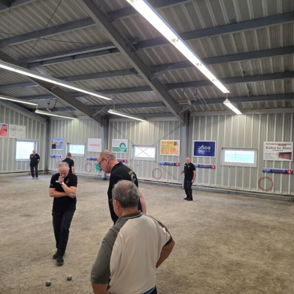 Pour les triplettes sont associés Didine Dan et Patrick qui vont remporter leur match assez facilement et de l’autre côté Philippe, Christian et Laurent qui vont malheureusement s’incliner.